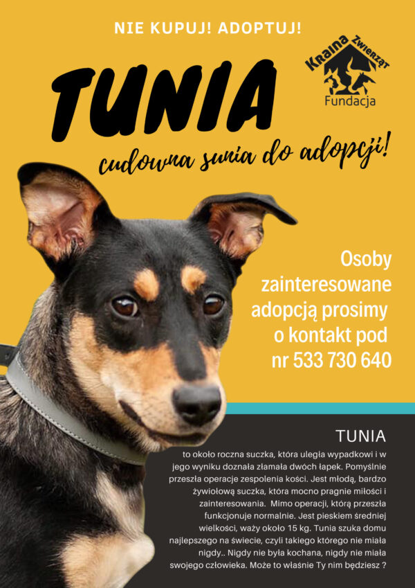 Yellow Brown Teal Dog Cutout Adopt Pet Poster | Fundacja Kraina Zwierząt
